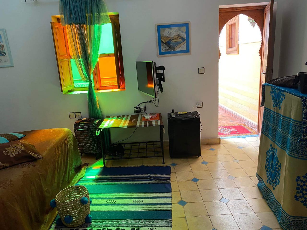 The Turquoise room is spacious and bright, with a window opening onto a private balcony above the patio. Shimmering colors, turquoise and chocolate. Furnished with a High Atlas cedar bed, it invites you to relax and unwind in its private turquoise taddelak bathroom.